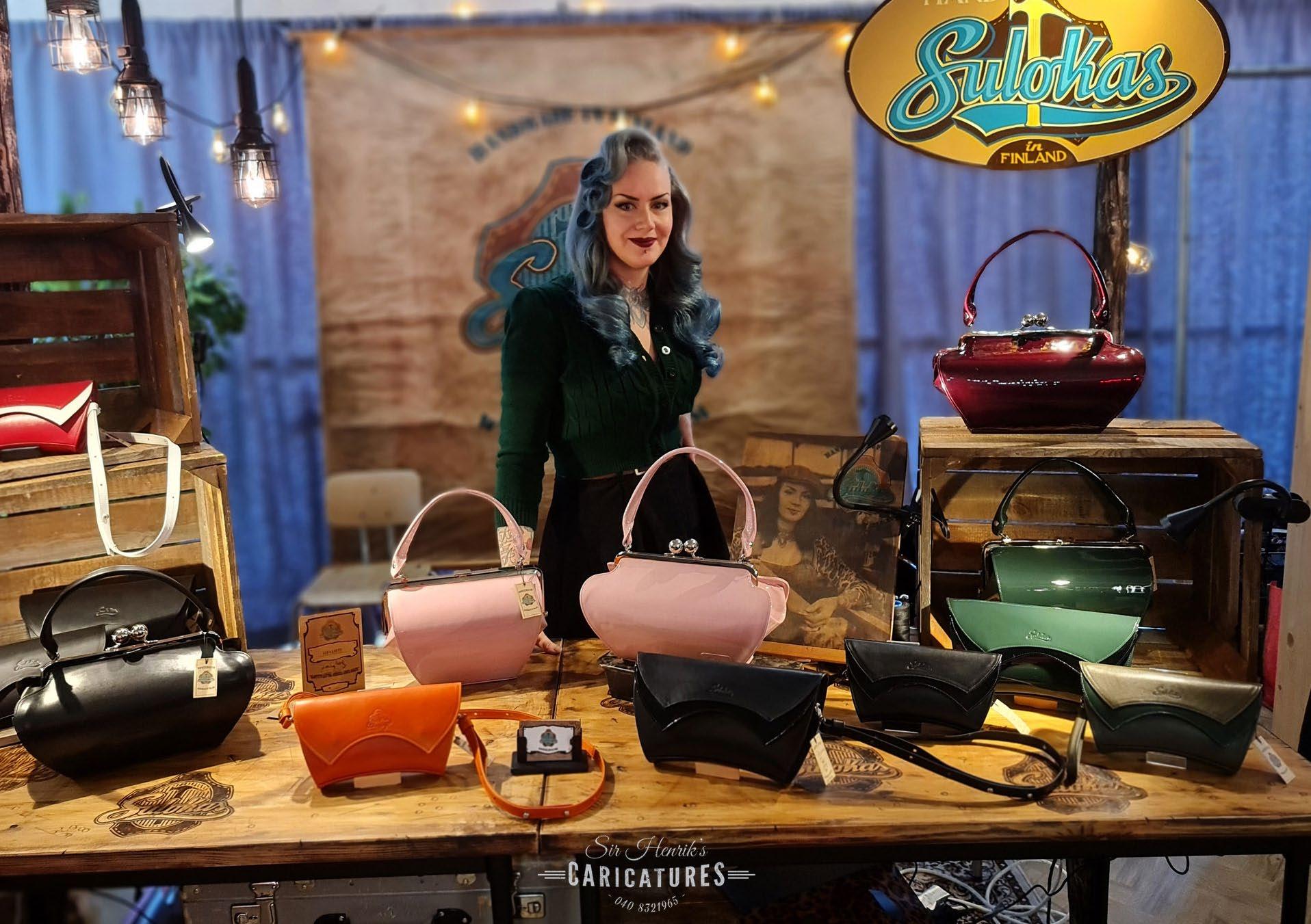 Sulokas toi myyntiin ja esille taiteilijan itsensä, Sini Hulkkosen suunnittelemia ja käsitöinään valmistamia kotimaisia nahkaisia vintage henkisiä design käsilaukkuja.