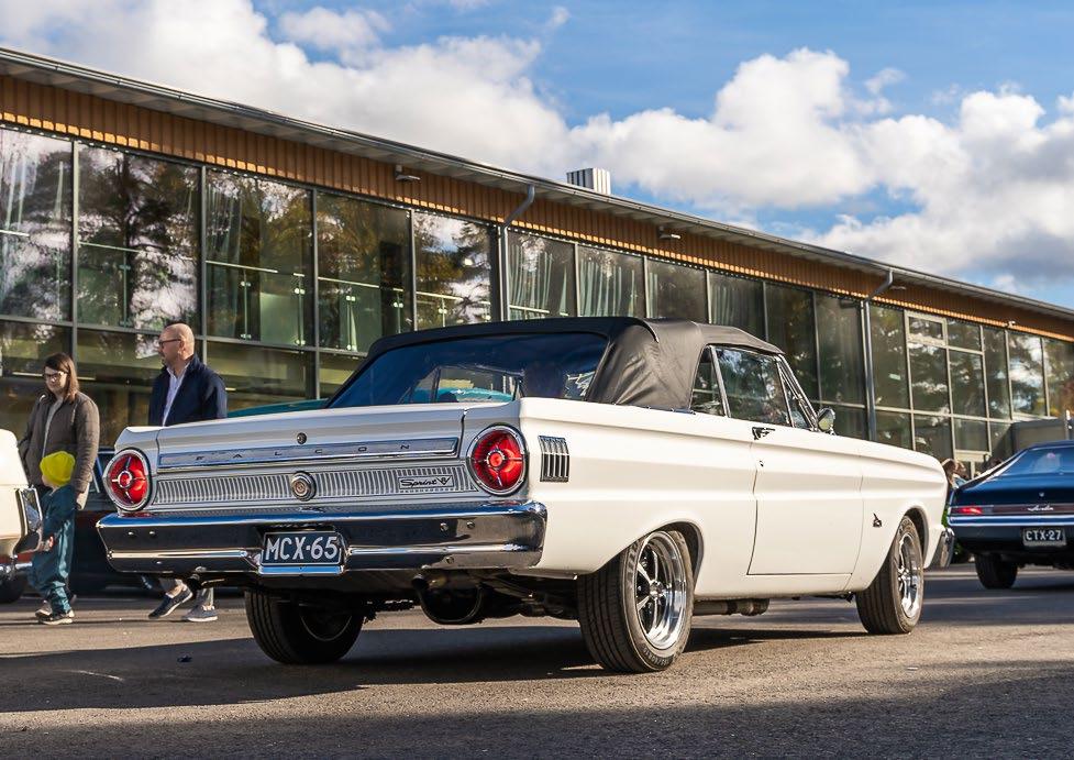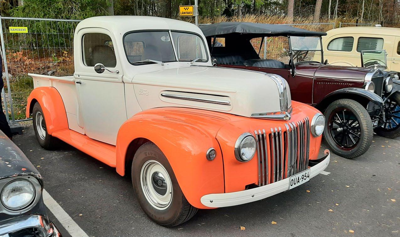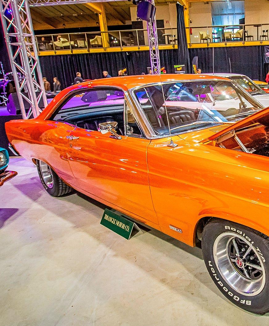 Antti Mattila ja Juhani Valtonen matkasivat yhdessä Turusta Järvenpäähän. Molemmat miehet ovat pitkän linjan Ford miehiä ja ovat näyttäneet osaamistaan jo monesti aikaisemin. Moni muistaa Valtosen 1980luvulla rakennetusta huikeasta Ford Torino Coupesta, joka siihen aikaan jäi monen nuoren mieleen. Torino oli aikaansa edellä ja show-tasoa, mutta samalla matkamittariin tuli kilometrejä paljon kesäisin. Torino ja lukuisat aikaisempien vuosien Rancherot ovat miehellä vielä ajossa. Nyt Juhani toi esille useamman vuoden työn alla olleen Ford Fairlanen vuodelta 1966. Fairlane on täysin läpikäyty ja huolella varusteltu. Auton onnistunut oranssi värivalinta on kuin se kuuluisa piste iin päälle.