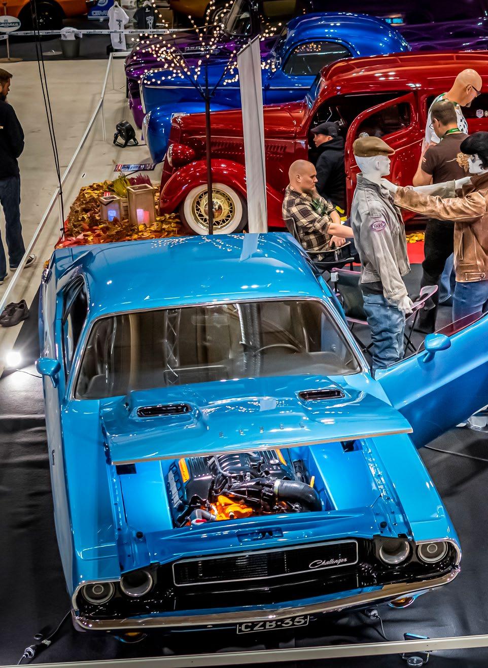 Tero’s Garage itäisen Suomen Liperistä, osallistui Jenkkiautonäyttelyyn kahdella näyttävällä muskeli klassikolla. Teron pajasta on valmistunut tiheään tahtiin laadukkaita ja viimeisteltyjä harrasteautoja. Oldsissa on perinteinen 60-luvun tekniikka ja Challengerissa uudempi 2000-luvun Mopar tekniikka ruiskuineen. Terolla on aina hyvä silmä osaston kokonaistunnelman luomiselle, niin tälläkin kertaa mm. spottivaloilla ja mallinukeilla saatiin kokonaisuudesta harkitun oloinen.