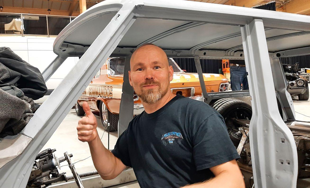 Peder Karlssonin Chevy Camaro 1972, jota on kahden vuoden ajan täysin käsityönä rakennettu. Muutokset ovat kaikki customtyötä. Autossa on Racespec LS7, jossa tehoja mitattu kunnioitettavat 750hp. Kuvassa Tokan, auton yksi rakentajista.