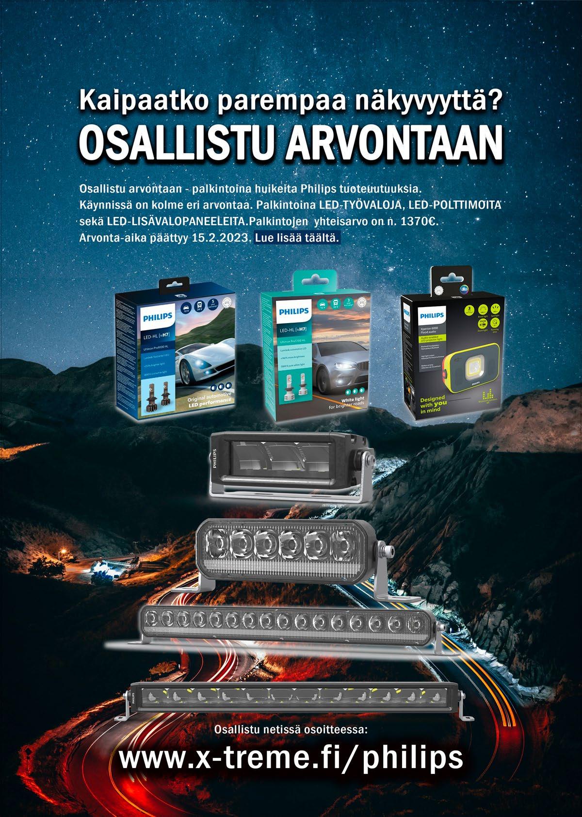 Osallistu arvontaan ja voit voittaa HUIKEITA PHILIPS tuotteita. Arvomme mm. ajoneuvopolttimoita, lisäpaneeleja sekä työvaloja.