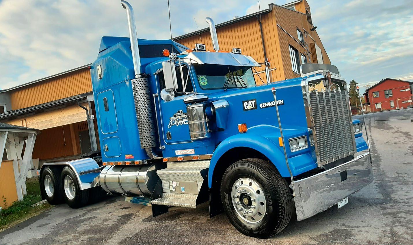 Jouko Myllymäen Jenkkirekka otti näyttely-yeisön tyylikkäästi vastaan. Kyseessä on Kenwurth W 900 B 1986. Auto on alkupesäiskuntoinen museoajoneuvo, jossa paljon kiiltävää pelliä.