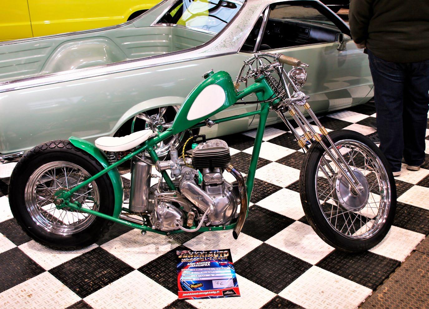 Stellan Egelandin upea Harley Davidson UL ”Esox Lucius” 1938/2006. Pyörä on saanut inspiraationsa entisajan hot rod drack racing Altered-luokasta. Pyörä saavutti toisen ja kolmannen sijan Euroopan custom moottoripyörärakennuksen maailmanmestaruuskilpailuissa vuonna 2006