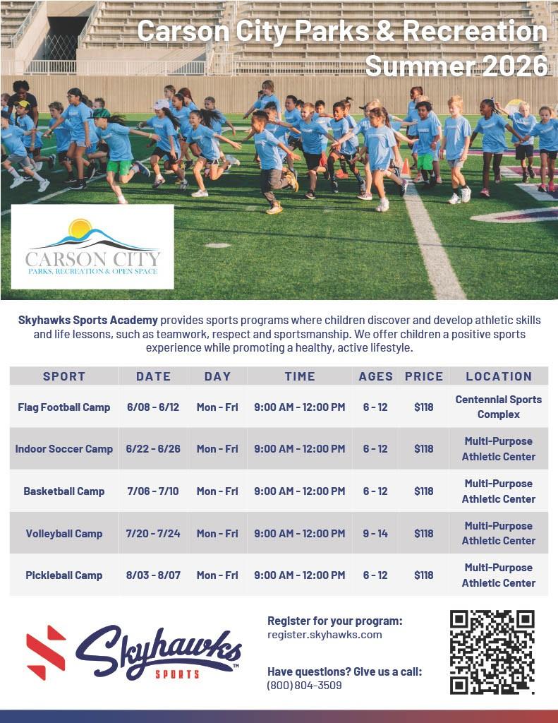 By attending any Carson City Parks and Recreation program or event, you understand that a photo of you or your family may be taken and may be used in future marketing materials. Names are not published without permission granted by the participant or the participant’s parent or guardian. If you do not wish to have your photo taken, please notify the photographer or program supervisor.