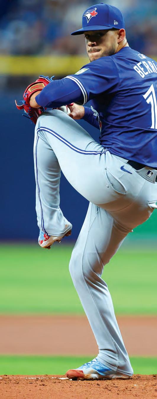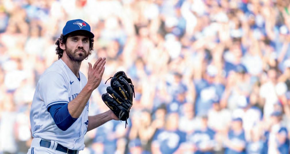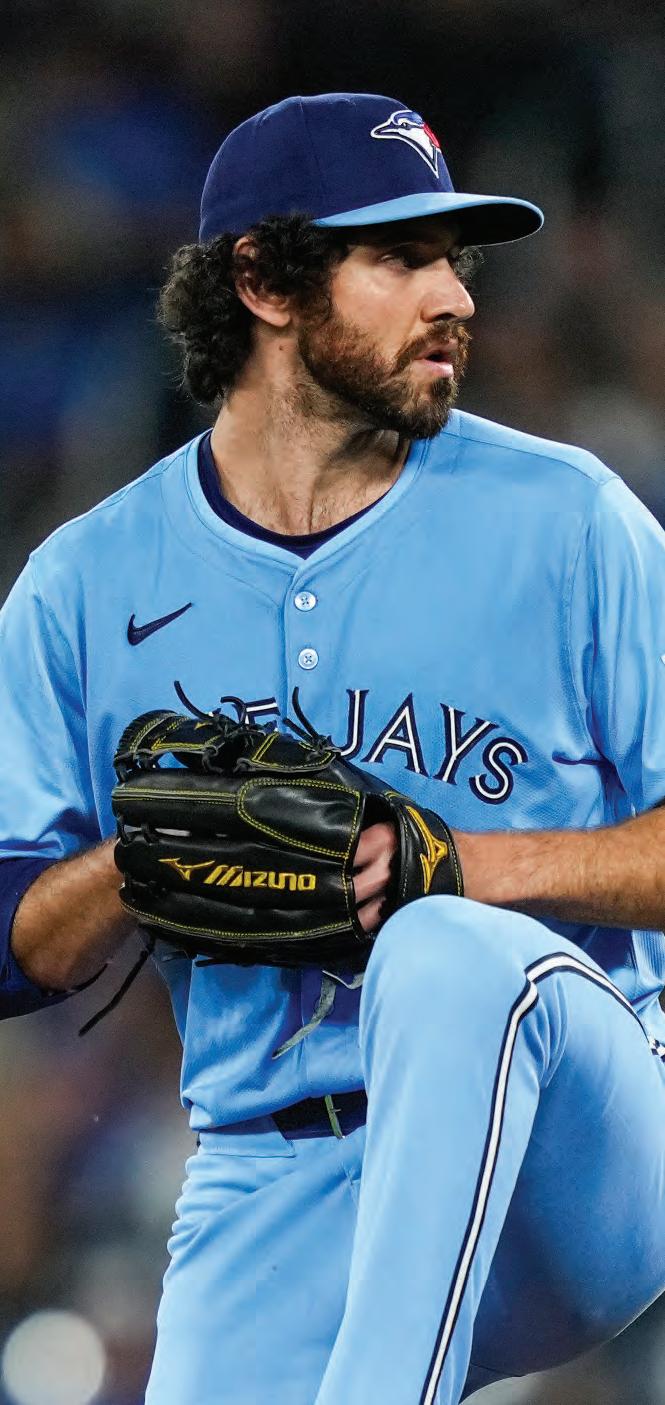 After an up-and-down 2023, Alek Manoah returned with a thunderous impact in his first home start this year, pitching seven innings with zero earned runs allowed and six strikeouts. The 6’ 6” right-hander’s electric enthusiasm and swagger arm him with a “bulldog” mentality on the mound that led to a third-place finish in AL Cy Young voting just two seasons ago. al EK M a NO a H 6