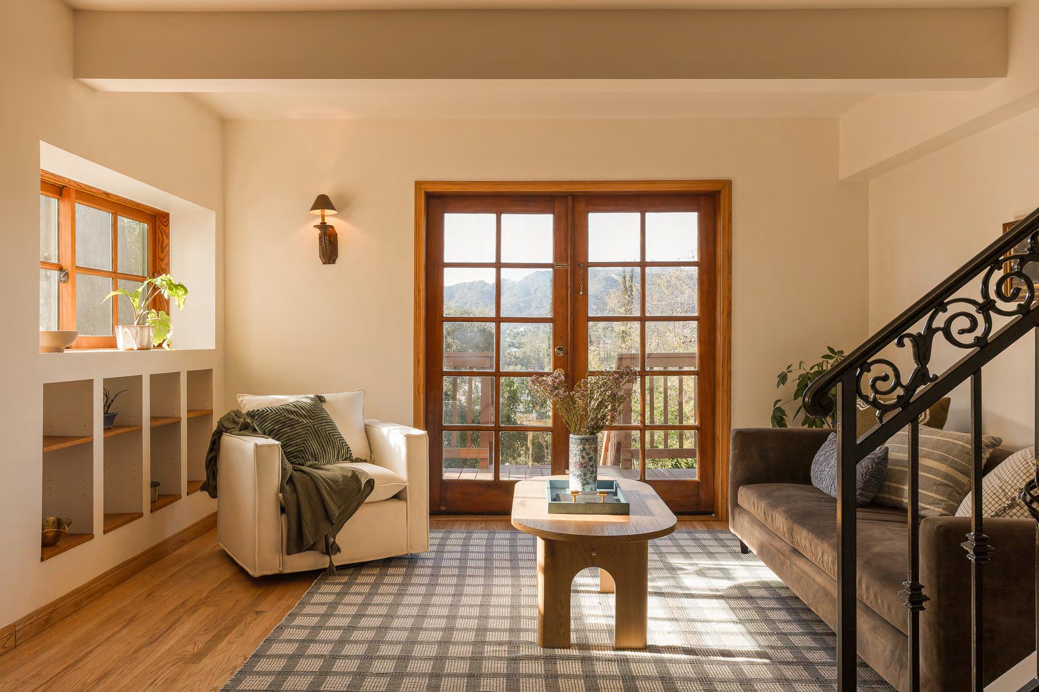 Inside, light pours through every room, softening edges and casting a golden glow—the kind that lingers on wood floors, dances across walls, and makes even the quietest corners feel alive.