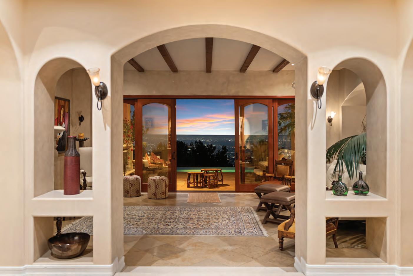 Situated in the prestigious Trousdale Estates, this one-of-a-kind Mediterranean architectural gem captures the sophistication and serenity that de ne Beverly Hills hillside living. Privately set on coveted Carla Ridge, this custom-remodeled single-story residence o ers four bedrooms and ve baths, thoughtfully designed to highlight its sweeping panoramic city views and exceptional privacy. e home welcomes with warm Mediterranean character, generous ceiling heights, and an inviting oor plan that blends elegant living spaces with updated nishes throughout. Large picture windows frame stunning city vistas and ll the interiors with natural light, enhancing both everyday living and e ortless entertaining. e remodeled kitchen and common areas provide comfortable ow, while the bedroom suites are well-appointed for relaxation and privacy. Outside, the property delivers the true Trousdale experience serene views, mature landscaping, and multiple areas for lounging and dining, all set against the dramatic backdrop of the city skyline. An opportunity to own a distinct, custom-crafted Mediterranean home in one of Beverly Hills' most coveted enclaves. Available for Lease!