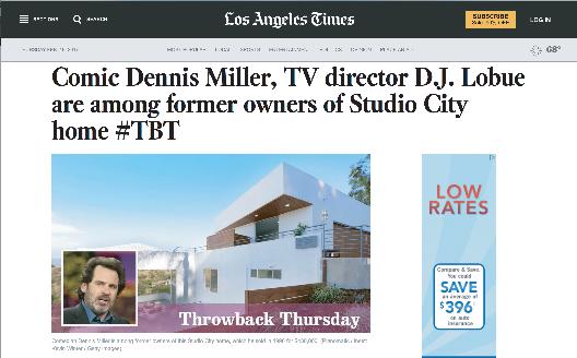 S h a w n ’ s r ecent sale in Studio Ci t y , w h ich i s a fo r mer h ome of co m ic Dennis M ille r and di r e cto r D J. Lobue was featured in t he Los A ngele s Ti m es
