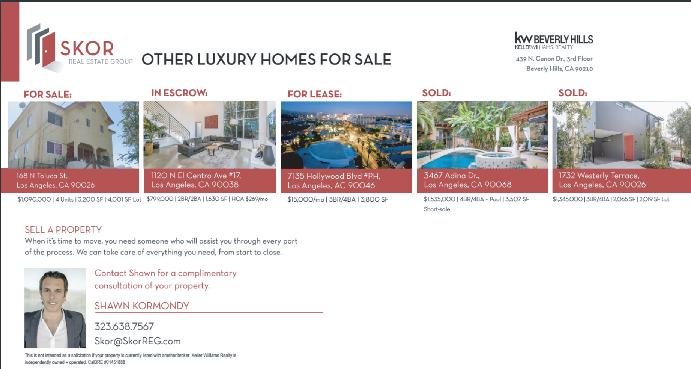 S h a w n Kor m ondy i s a top-p r oducing r eal e s tate agent H e h a s r ep r e s ented bu y e r s and selle r s of h omes , in v e s t m ent p r ope r tie s , and d e velop m ent p r oject s t h r oug h out L o s A ngeles s ince 2004 S h awn h a s t r a v eled all o v e r t h e w o r ld , but t h e r e is only one plac e h e cal ls h o m e – L o s A ngele s W h e r e else can you find fabulous restau r ants, grea t entertainment , w a r m and f r iendly people, top quali t y sc h ools, beautiful par k s and s uch dive r se a r c h itecture? S h awn lives and breat h es L A , and h e brings t h i s ent h usias m and e x cite m ent to all of h is real estate t r ansactions. H e a t tributes h i s o v e r 200 closed t r ansactions to h is ene r g y , h ard work, h igh values and most of all , a dogged de s i r e to se r ve h is clients’ needs. He combines a wide w ealth of peopl e s k ills , negotiation s av v y and a k een awareness of legal issues and boundarie s to o f fer a t r ul y full se r vice r eal estate s h op. In h is spare time, S h awn is an avi d camper and s k ie r , but is mo s t p r oud of h is work in s e ve r al c h aritable foundation s including K W C a r e s , C h ild r e n ’ s Music F und, and F riends of W est Hollywoo d Ele m enta r y