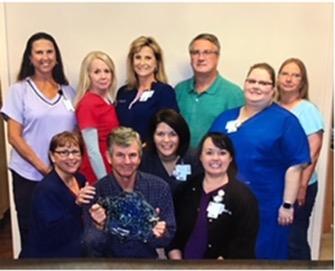 The Mountain Home treatment facility started with Dr. Gary Wells, Kelly Davidson (RN), Katrina Clements (office supervisor and scheduler), Susan Lyon (receptionist), Kay McHughes (therapist and dosimetrist), and Nadra Woods (therapist). Doug Tanner was our first full-time dosimetrist. Since then, the team has steadily grown. Our patients have been served by Gene Sadowski (therapist), Jackie Tanner (therapist), Susie Engleman (therapist) and Darrel Wayne Martin (therapist). Our current team includes Dr. Kristi Gast, Dan Ryan (dosimetrist), Pam Tornquist (LPN), Ron Martin (RN), Sheila Curtis (office administrator), Stephanie Davis-Osborne (therapist), Rachel Luther (therapist), Robin Horton (therapist), Stacie Jones (therapist) and Sarah Talley (PSS).