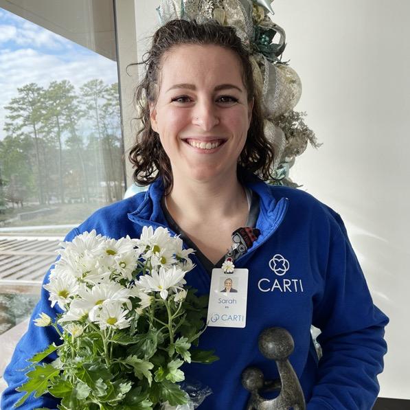 We were so excited to award our third-ever DAISY Award here at CARTI! SARAH PASSMORE IS DESCRIBED AS A SPECIAL NURSE WITH A CONTAGIOUSLY POSITIVE ATTITUDE. She comes in each day with a smile, a warm heart, and big eyes. She has shown to be so empathetic while helping patients navigate one of the most stressful and challenging moments of their lives. SHE MAKES HER PATIENTS FEEL AT HOME.