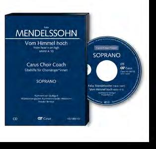The Carus Choir Coach offers choir singers the unique opportunity to study and learn their own, individual choral parts within the context of the sound of the entire choir and orchestra. For every vocal range a mp3 CD or download containing each choir part is available. The Carus Choir Coach is based on recorded interpretations by renowned artists who have performed the work from carefully prepared Carus Urtext editions. Each choir part is presented in three different versions: