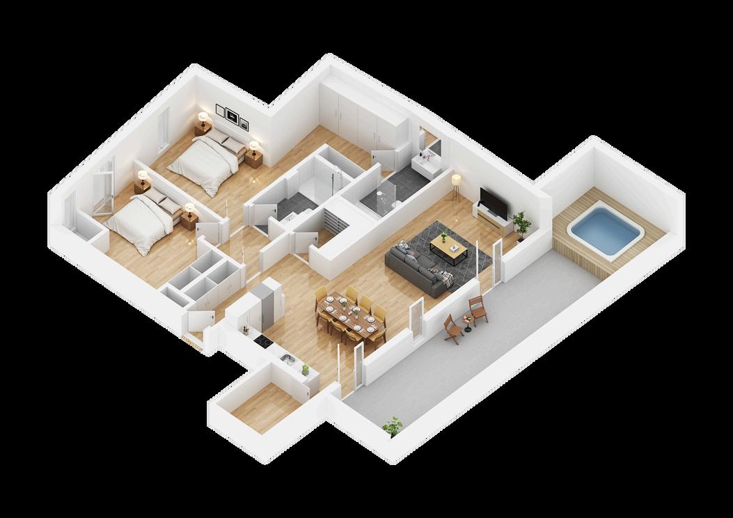 Os apartamentos foram concebidos para oferecer conforto e bem-estar, com varandas que convidam a aproveitar o exterior e grandes janelas que permitem a entrada abundante de luz natural, criando espaços luminosos e bem arejados.