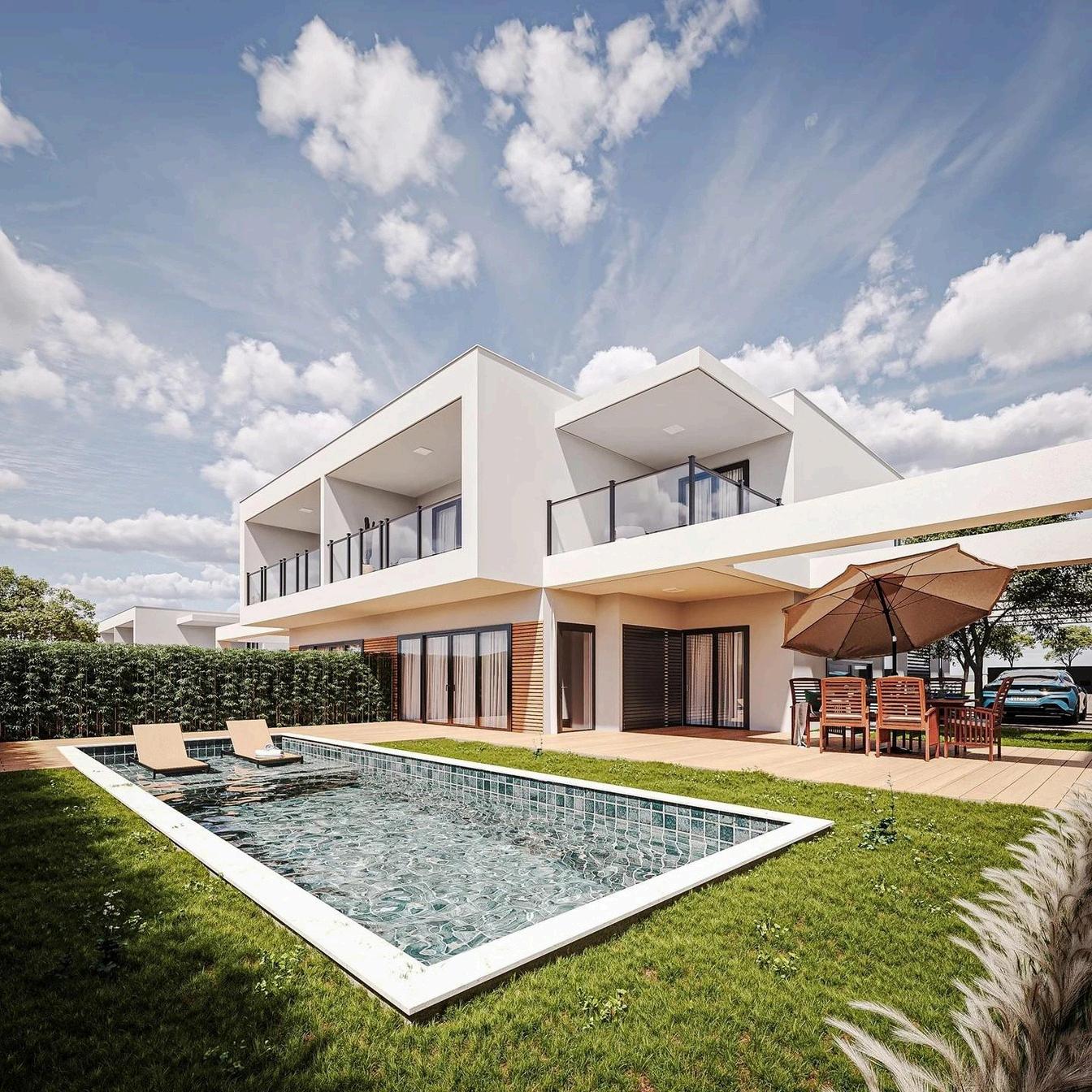Construída de acordo com os mais altos padrões da arquitetura moderna, esta residência equilibra perfeitamente espaço e conforto. Cada divisão é generosamente dimensionada, com casas de banho privativas, oferecendo todos os luxos e comodidades que se esperam de uma moradia geminada de alta gama.