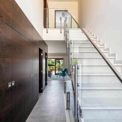 The villas, spread across three floors with a spacious basement, welcome you to a thoughtfully designed space On the ground floor, there is a guest bathroom, a fully equipped modern kitchen, and a large open-plan living and dining area. Sliding glass doors connect the living area to a spacious covered terrace, perfect for outdoor dining and socialising Beyond the terrace, a compact private garden surrounded by viting retreat.