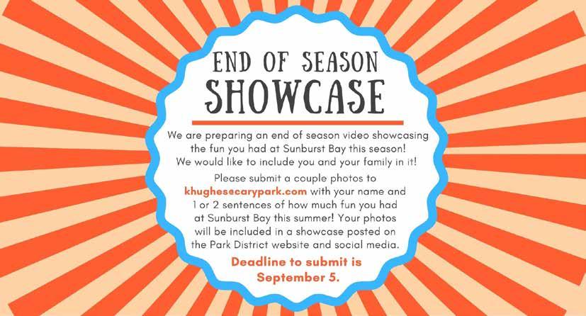 847.639.6100 car ypark.com Fall 2022 Registration Dates August 15 | Resident Registration Begins 7:00 am August 22 | Non-resident Registration Begins 7:00 am Registration is accepted at car ypark.com and at the Community Center, 255 Briargate Road, Cary. Impor tant Sunburst Bay Dates August 8 | Open Evenings and Weekends Only August 20 | Open Weekends Only September 5 | Closes for the Season at 7 pm Look Inside for Sunburst Bay Aquatic Center Get Ready for the School Year! E.T. KidZone Before & Af ter School Care Register for the 2022/2023 School Year Cary Park Distric t Preschool Openings in our 4-Year Old Classes Kid’s Day O Programming Spend Your Day O School With Us! Fall & Holiday Ac tivities Hayrides, Visits with Santa, Craf t Show, Letters to Santa & More Lots of Ways to Celebrate the Season with Us!