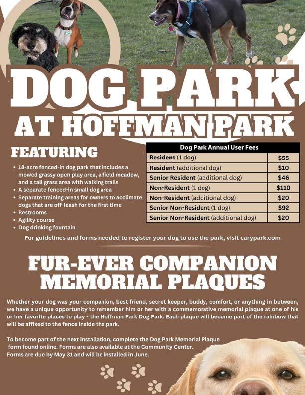 The Park Board meets on the fourth Thursday of each month (unless otherwise posted) at 7:00 pm at the Community Center, 255 Briargate Road. All are welcome to attend. Meeting agendas and minutes are posted at carypark.com.