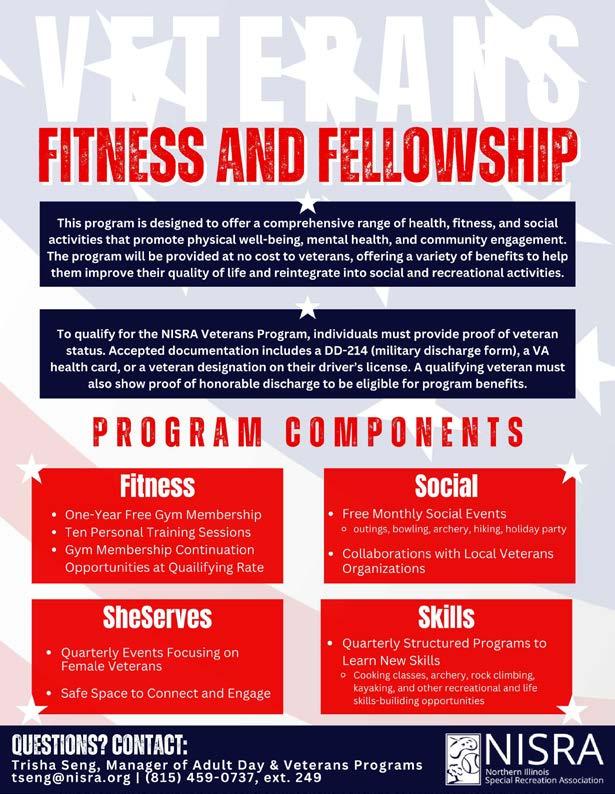 In addition to the programs listed within our brochure, the Park District also provides specialized services for people with disabilities through the Northern Illinois Special Recreation Association (NISRA). Feel free to call NISRA at 815.459.0737, or see the NISRA section of this brochure for more information.