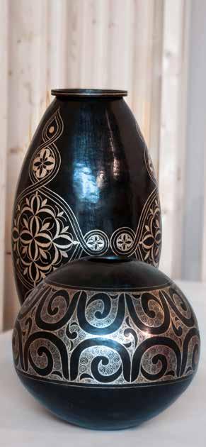 Jurande es un espacio virtual de comercio justo de diseño y artesanía fundado en 2019 por Imane Douali y Sayantani Mitra. Douali es originaria de Casablanca y busca promover la preservación artesanal a nivel mundial, con especial atención a países en vías de desarrollo, donde esta actividad puede constituir una oportunidad de futuro. Mitra es antropóloga y escritora originaria de Calcuta, y también está involucrada en diversas iniciativas que apuestan por la preservación y el comercio justo de la artesanía mundial. En su página web se pueden encontrar diversos productos para el hogar tales como alfombras, lámparas, fundas de cojines o mobiliario, realizados por artesanos de Marruecos, a los que pronto se unirán creadores de otras partes del mundo. En la exposición Mano sobre mano se presenta una selección de obras realizadas por Hicham Essaidi, artesano especializado en el arte del damasquinado y procedente de una familia que se ha dedicado a ello durante generaciones. Essaidi entró a formar parte del taller de su padre a los 17 años, donde aprendió esta técnica que consiste en decorar objetos de metal mediante la incrustación de hilo de plata y oro. Palais Damasquini, el taller de Hicham y su familia, se encuentra en Meknés, uno de los epicentros históricos del damasquinado. En Mano sobre mano se incluyen tres piezas realizadas en acero y decoradas con motivos en hilo de plata.