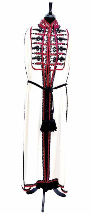 Nacida en Salé, Fadila El Gadi desarrolla desde joven una pasión por la moda y el arte del bordado. A principios de los años 80, durante sus vacaciones escolares, El Gadi se forma en talleres de artesanos de Salé, para poco después inscribirse en una escuela de diseño textil con sede en Rabat. En los años 90, inaugura un pequeño taller en la capital con venta por encargo, dando inicio a su andadura como diseñadora. En ese momento, conocerá a Yves Saint Laurent, quien le propone visitar sus talleres en París y exponer sus propios diseños en la Ville Majorelle. Gracias a su apoyo y con el progresivo aumento de clientela, decide lanzarse a crear colecciones prêt-à-porter, fundando en 2007 su propia marca de moda con puntos de venta en Marrakech, Rabat y Casablanca. Sus colecciones combinan formas inspiradas en el patrimonio textil marroquí, el arte contemporáneo y el diseño de moda actual. Junto a diversas figuras del mundo del diseño textil, El Gadi ha colaborado con artistas como Fouad Bellamine, Chourouk Hriech, Hassan Hajjaj o Mohamed El Baz. Sus prendas, realizadas en materiales de alta calidad que incluyen algodón, hilo de oro, seda o perlas, se comercializan a nivel internacional. En 2016, en colaboración con distintas instituciones, Fadila El Gadi funda una escuela de bordado con sede en Salé para jóvenes procedentes de familias en riesgo de exclusión. A través de esta escuela, El Gadi busca perpetuar el arte del bordado y ofrecer oportunidades de futuro a estos adolescentes, que también reciben clases de inglés, francés o informática. En la exposición Mano sobre mano se incluye un conjunto de falda de punto con chaqueta y capa de cachemir bordadas a mano.