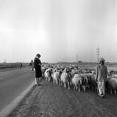 Turista europea con pastor, en una carretera del sur Colección Latif Al Ani, cortesía Arab Image Foundation, Beirut