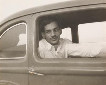 Anónimo. Retrato de Latif Al Ani en el asiento trasero de un coche, 1955 Colección Latif Al Ani, cortesía Arab Image Foundation, Beirut