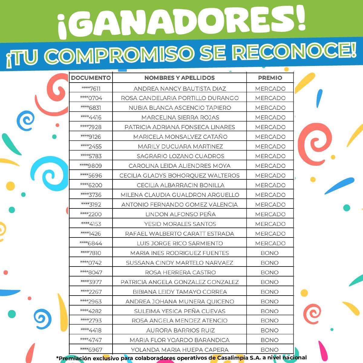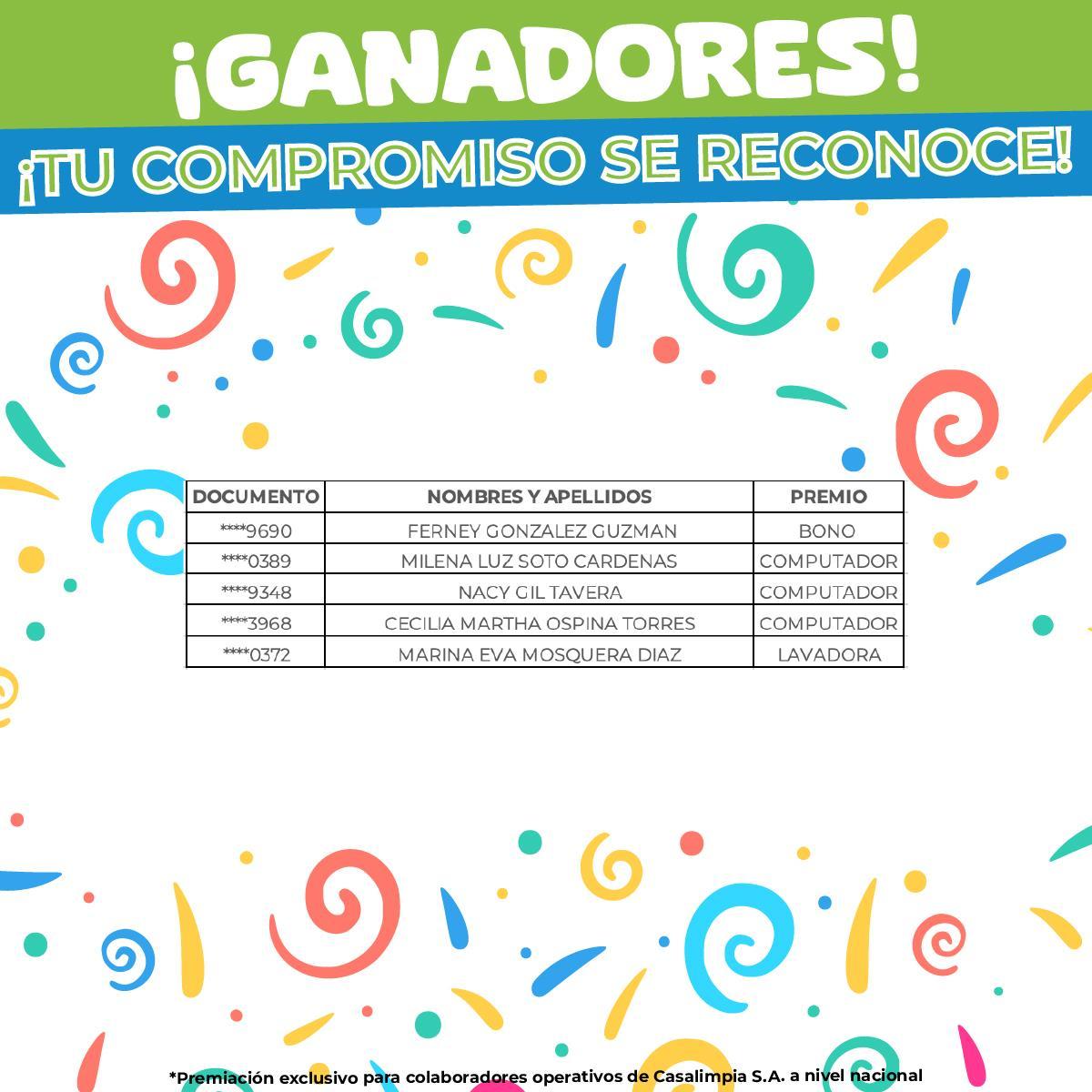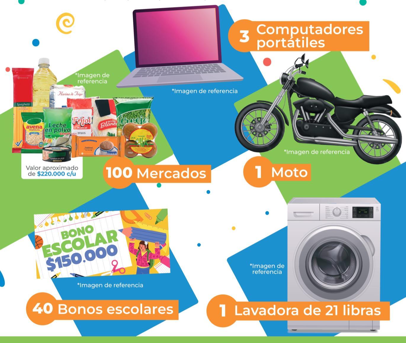 Nuestros ganadores recibieron un bono regalo por valor de $ 130 000 pesos, de igual manera se rifaron lavadoras, bicicletas, electrodomésticos, y bonos Compensar.