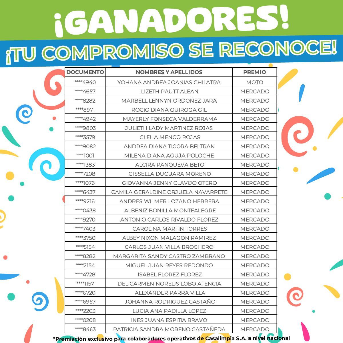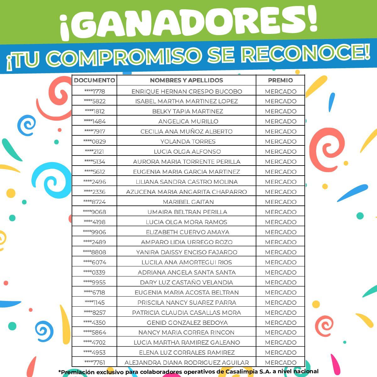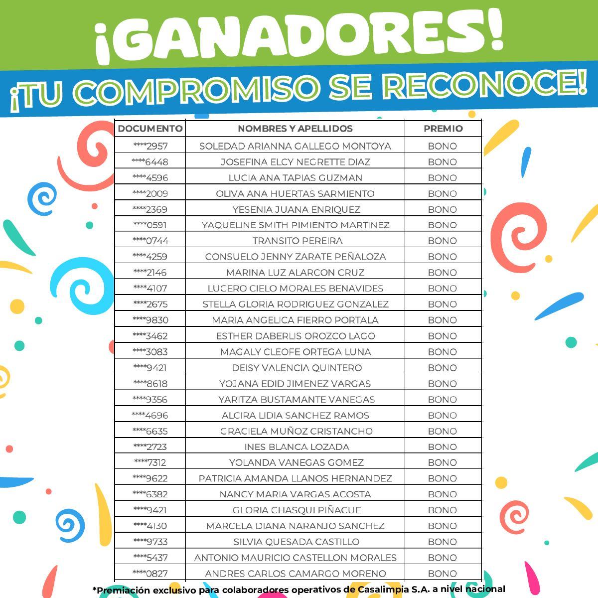 Nuestros ganadores recibieron un bono regalo por valor de $ 130 000 pesos, de igual manera se rifaron lavadoras, bicicletas, electrodomésticos, y bonos Compensar.