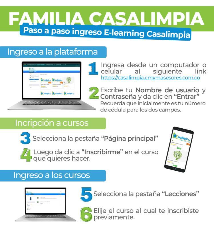 Link de acceso a la plataforma virtual: casalimpia.cmymasesores.com.co