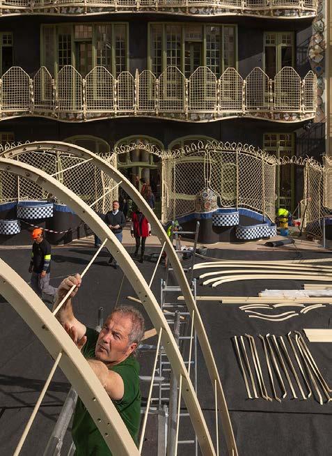 La madera ha sido restaurada por el especialista en carpintería patrimonial Josep Bartolí y su equipo. La mayor parte se ha restaurado en Casa Batlló. En su taller se han replicado solo las piezas necesarias.