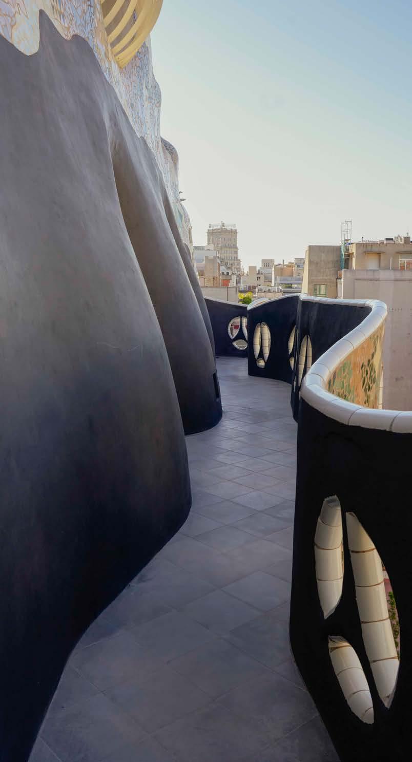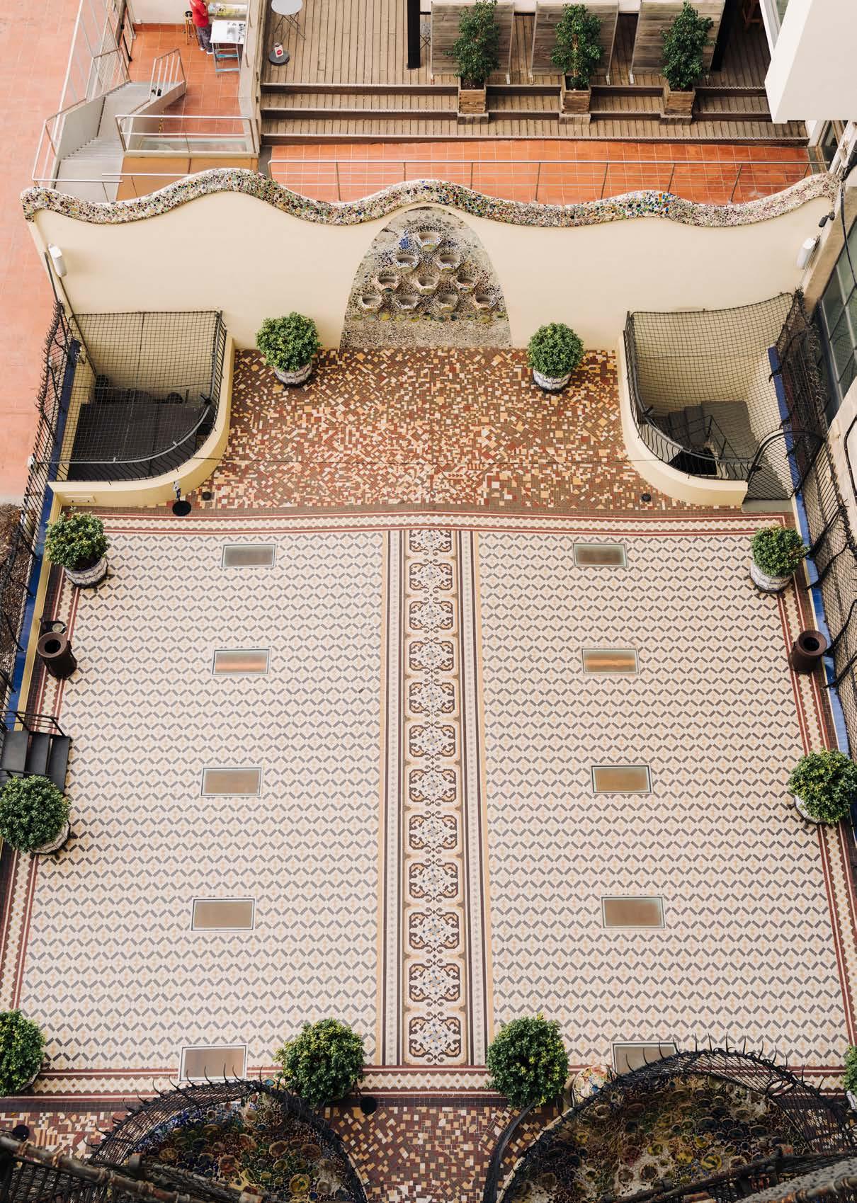 El patio era un espacio íntimo de relajación familiar que Gaudí concibió como un oasis en la ciudad, un jardín hecho de cerámica, vidrio y otros materiales.