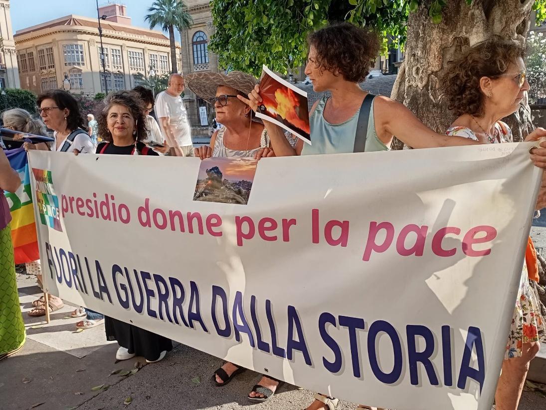 Il TG3 regione il giorno dopo ci ha dedicato un servizio: finalmente l’informazione, “servizio pubblico”, pare più attenta negli ultimi tempi alle voci di denuncia di una sempre più preoccupante militarizzazione anche dell’informazione. Per quanto ci riguarda noi, Donne del Presidio di Pace di Palermo, ci saremo ancora nei prossimi mesi, ripeteremo ancora “Fuori la guerra dalla Storia”, perché “la Pace non è un’Utopia lontana, né un fatto privato o diplomatico: la pace è una pratica collettiva, un atto politico quotidiano, un bene comune da costruire insieme”.