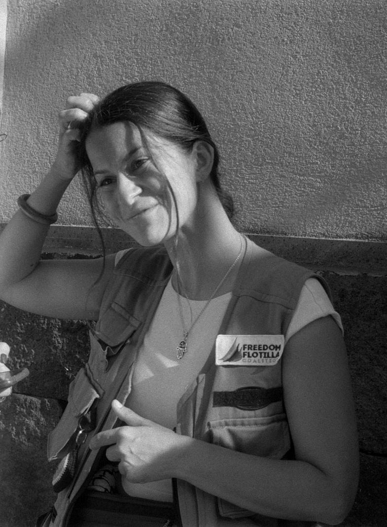 minuta, è un pilastro della missione. Autorevole, si muove comunicando la sua sicurezza, è una dei capi dell’organizzazione. La vedi sempre con la kefiah palestinese addosso, ora a coprire i capelli, ora sul collo o sulle spalle. Va sempre di fretta, per due minuti di intervista la devi rincorrere. È discendente curda nata e cresciuta in Turchia ma è residente in Germania e fa la ricercatrice. Attivista dei diritti umani ha seguito tante cause