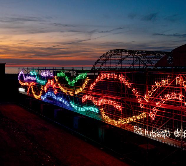 Michelangelo Pistoletto’s “Love Difference” installation is on display at the former IMARFA marble factory in Fasano, Italy, until the end of October. The neon light monumental work promotes peace and understanding among cultures, featuring the phrase “love differences” in multiple languages. This project marks the beginning of the site’s transformation into a contemporary art center. Pistoletto’s work, part of the “Arte Povera” movement, aims to inspire social transformation and unity, echoing the themes of the recent G7 summit. The installation overlooks the Mediterranean Sea, symbolizing connection and dialogue.