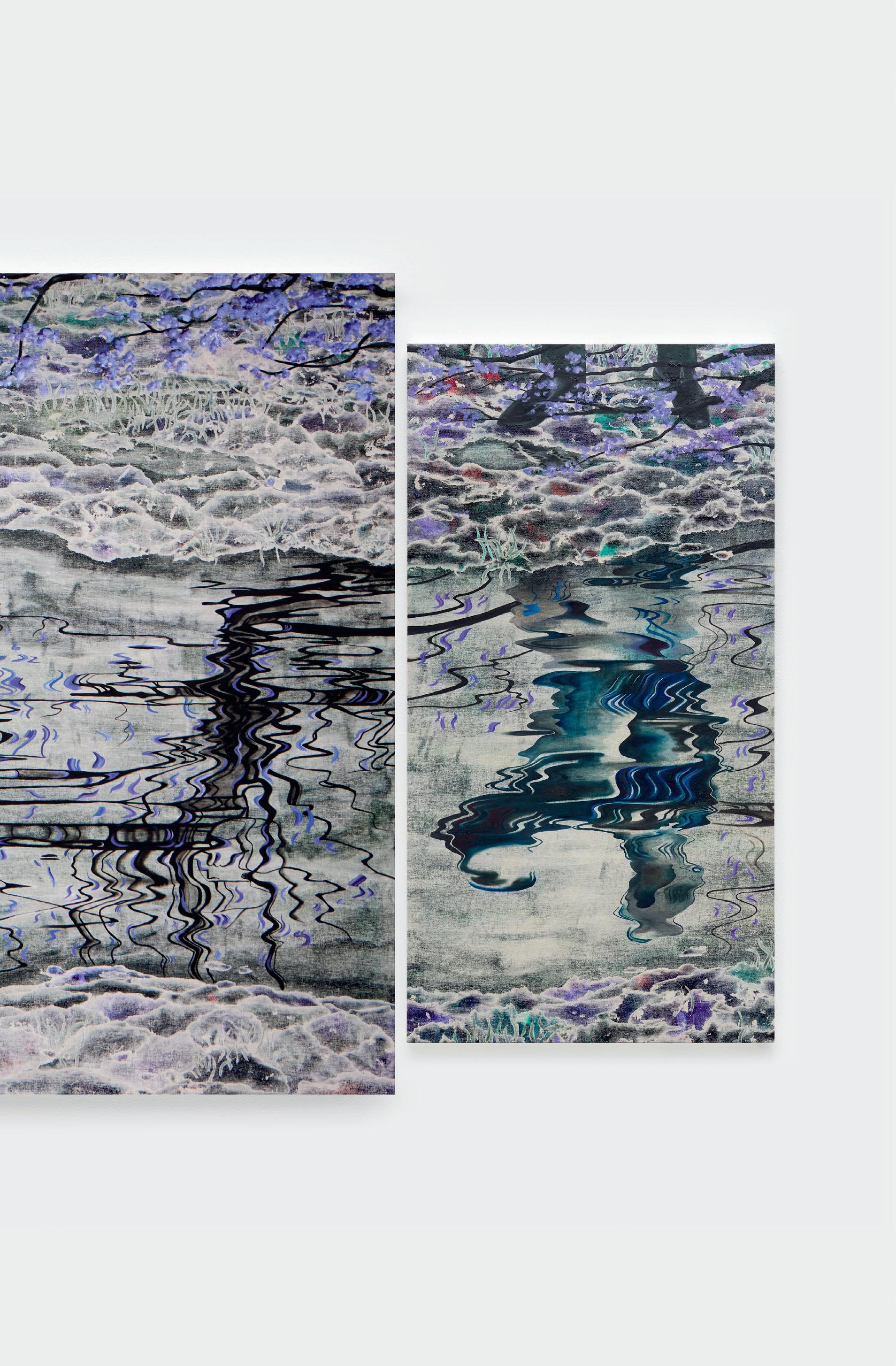 a technique the artist developed with his late collaborator Chiyan Ho that they called reverse painting. This is one of the first solo projects Ho has accomplished after vowing to continue their collaborative practice, perhaps not by coincidence suffused in haunted memory and grief.