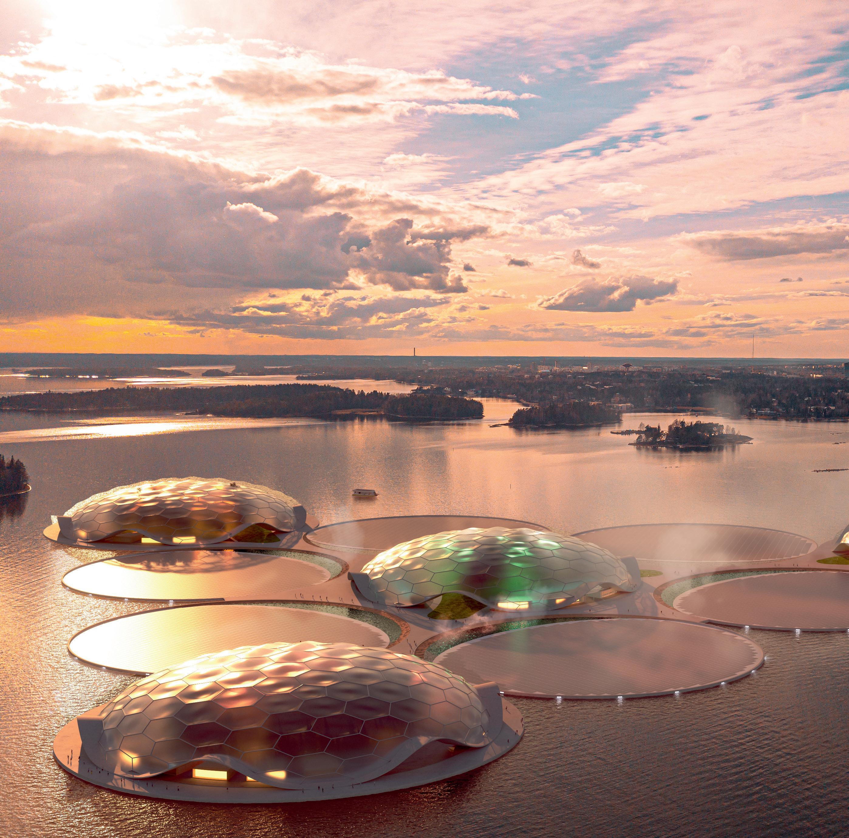 “Titled Hot Heart, the project is based on an archipelago of heat-storing basins with the dual function of storing thermal energy and serving as a hub for recreational activities. The “islands” will also be home to tropical forests and ecosystems from around the world, giving the Finnish capital additional public space and a new educational attraction. .”