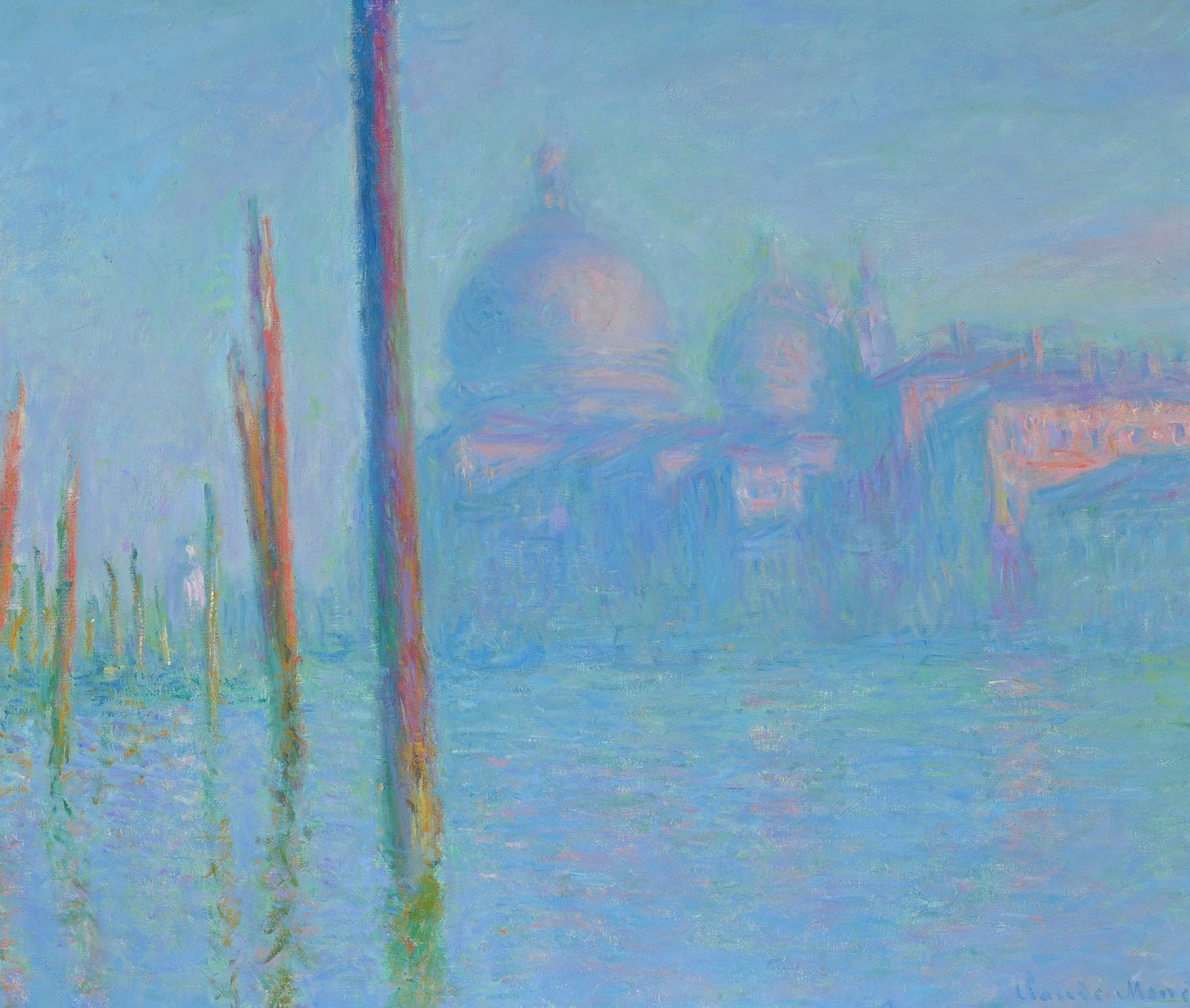 Alice’s sudden death in 1911 prevented the couple’s planned return. In mourning, Monet retreated to his studio, where he completed the Venetian series. When they were exhibited in Paris in 1912, they were met with