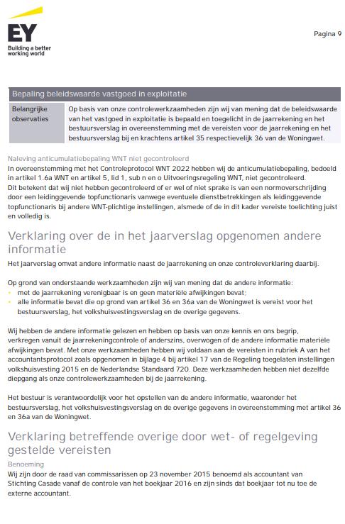 Op verzoek van de raad van commissarissen is een interne controle uitgevoerd op het onderhoudsproces. De controle laat zien dat de opzet van het proces dagelijks onderhoud prima is, dat er een goede basis ligt en dat goede controles worden gedaan. Wat het bestaan van het proces betreft zijn er zaken die moeten groeien, bijvoorbeeld waar het gaat over de voorinspectiefase en de prestatievaststelling. Casade is daar samen met de aannemers mee aan de slag.