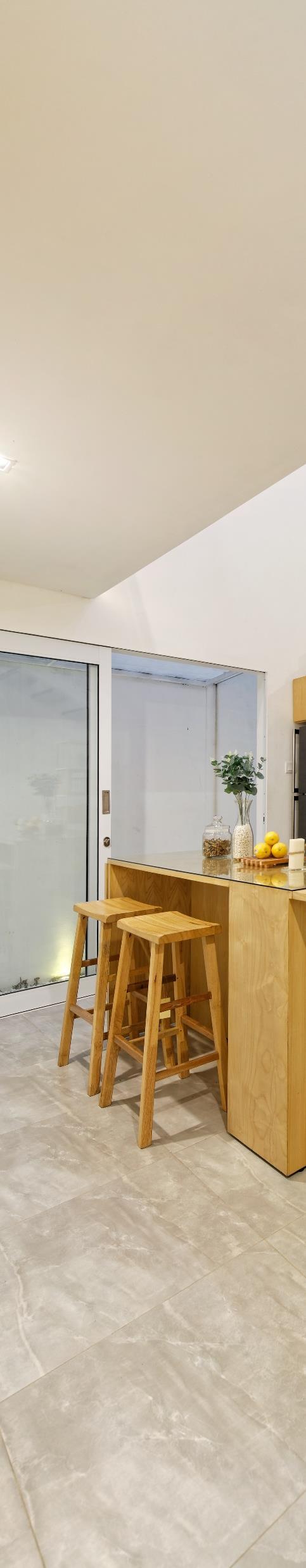 The solidity of the bamboo floor and columns meets the louvered bamboo ceiling at the capitals of each column, expressing a unity between the solid and porous surfaces. Two sculptural bamboo café counters follow this fluid design language. Assembled with resins under high pressure, engineered bamboo blocks were carved by 5-axis CNC milling and hand-finished to create the shopping district’s interior columns, capitals and counters.