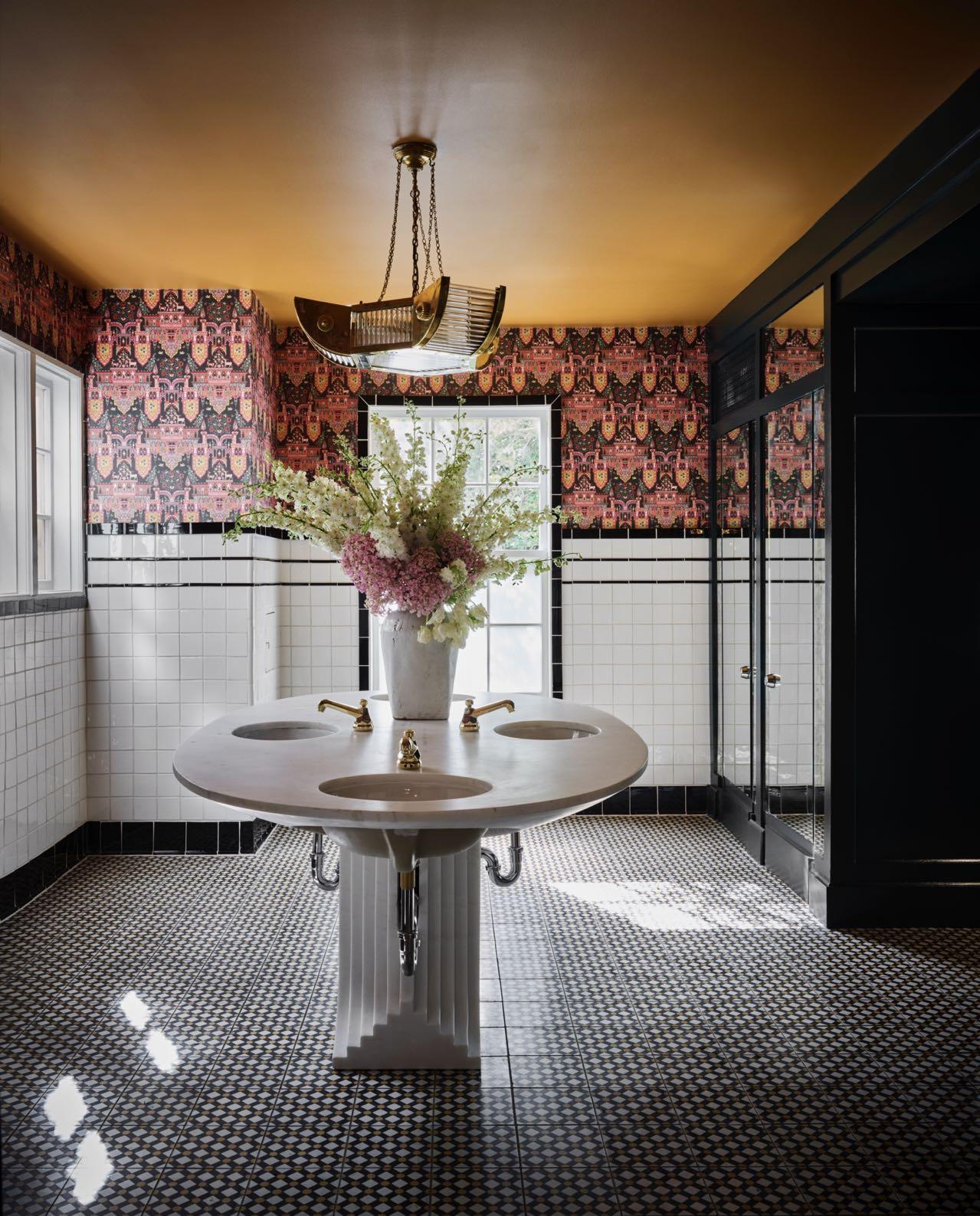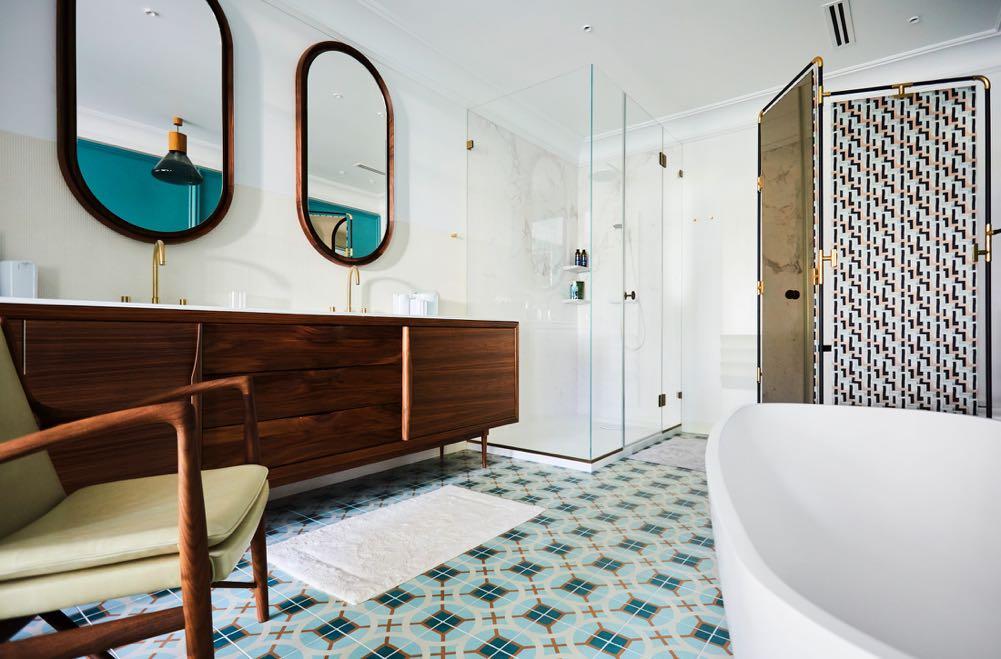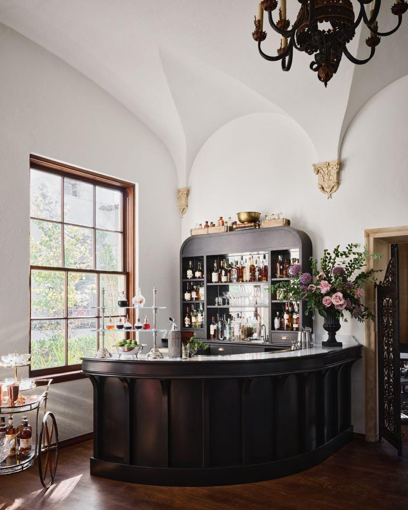 Inside, the guest rooms, Fulk’s design provides an elevated hotel experience Custom millwork built-ins, rounded plaster archways, furnishings based on Italianate and Spanish Revival antiques, and bathrooms tiled in a classic star-and-cross pattern were all chosen. Throughout the hotel, a collection of vintage rugs and framed artworks were carefully sourced by the design team.