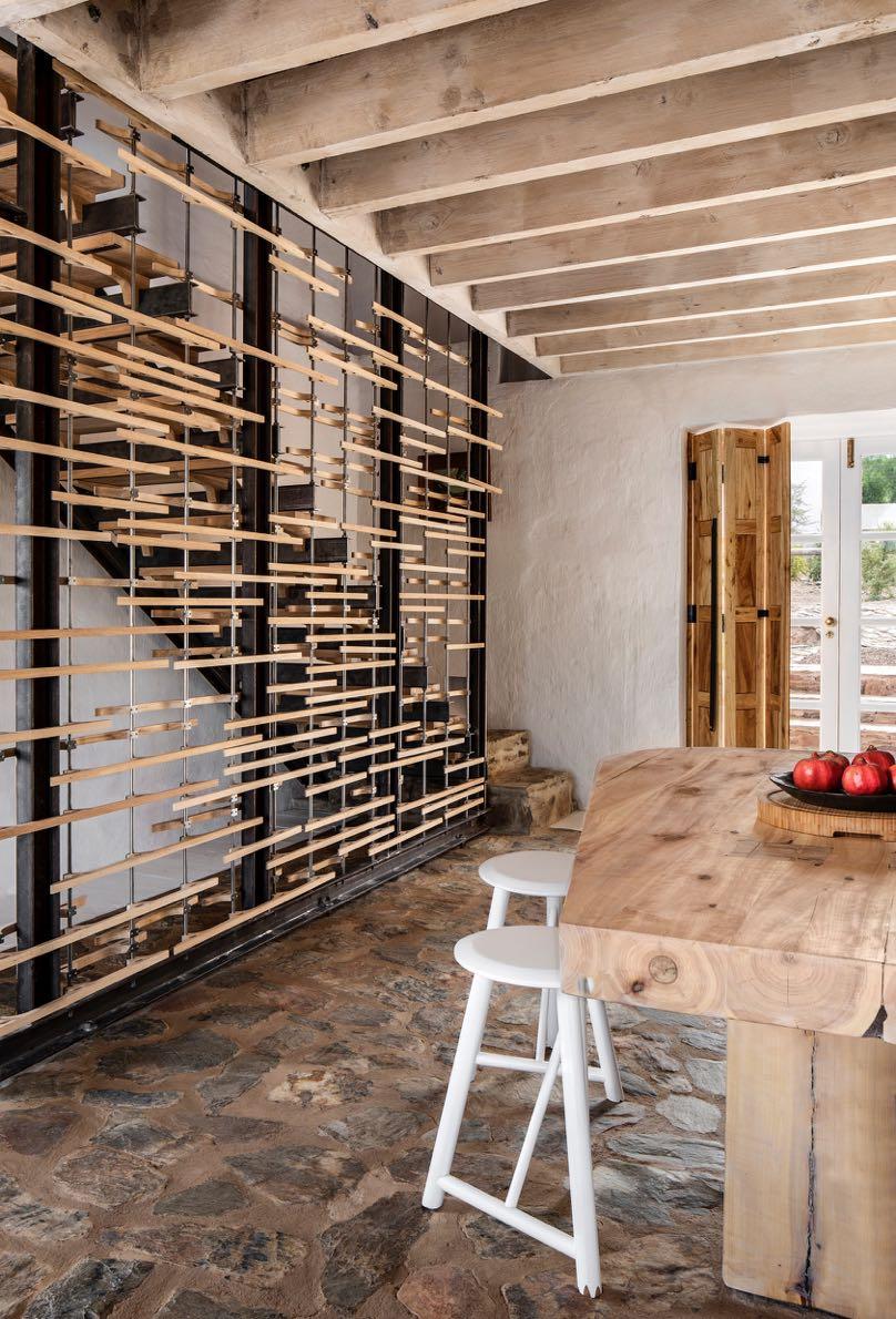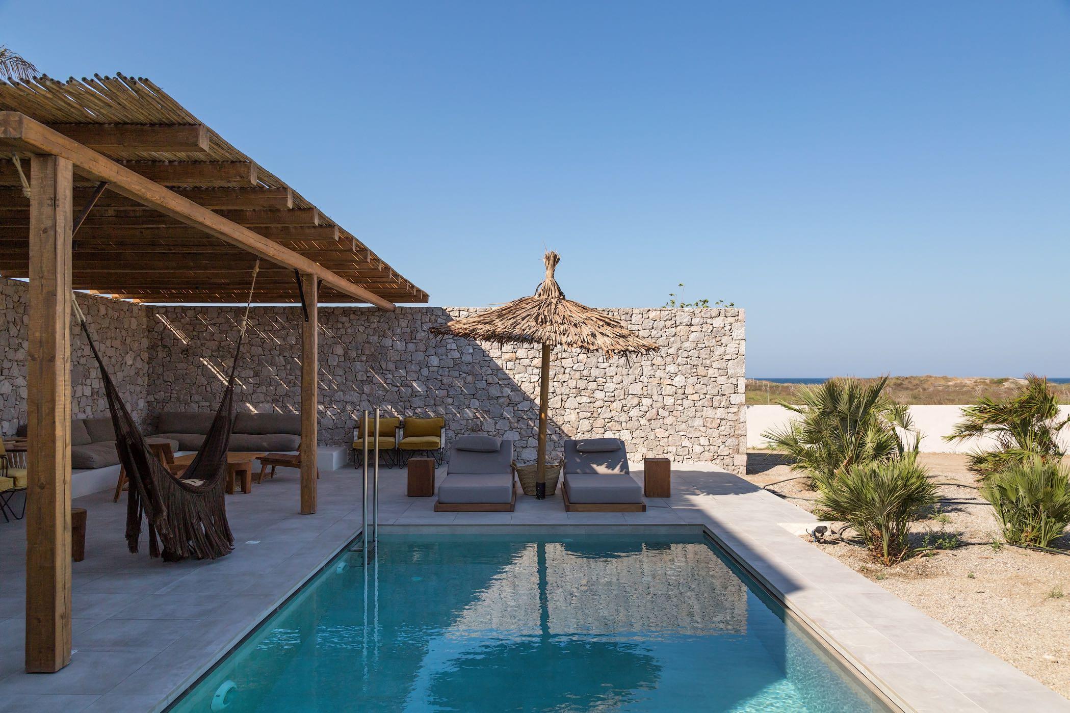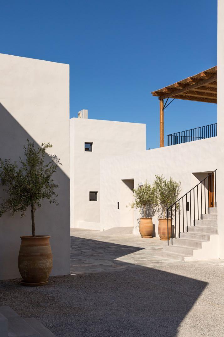 Inspired by the Greek way of life and developed into private sanctuaries, inside the rooms, mid-century elements are contrasted with naturally tactile textures and traditionally handmade pieces, bringing a sense of timelessness; simplicity and sophistication The materials are simple, local stone in dry