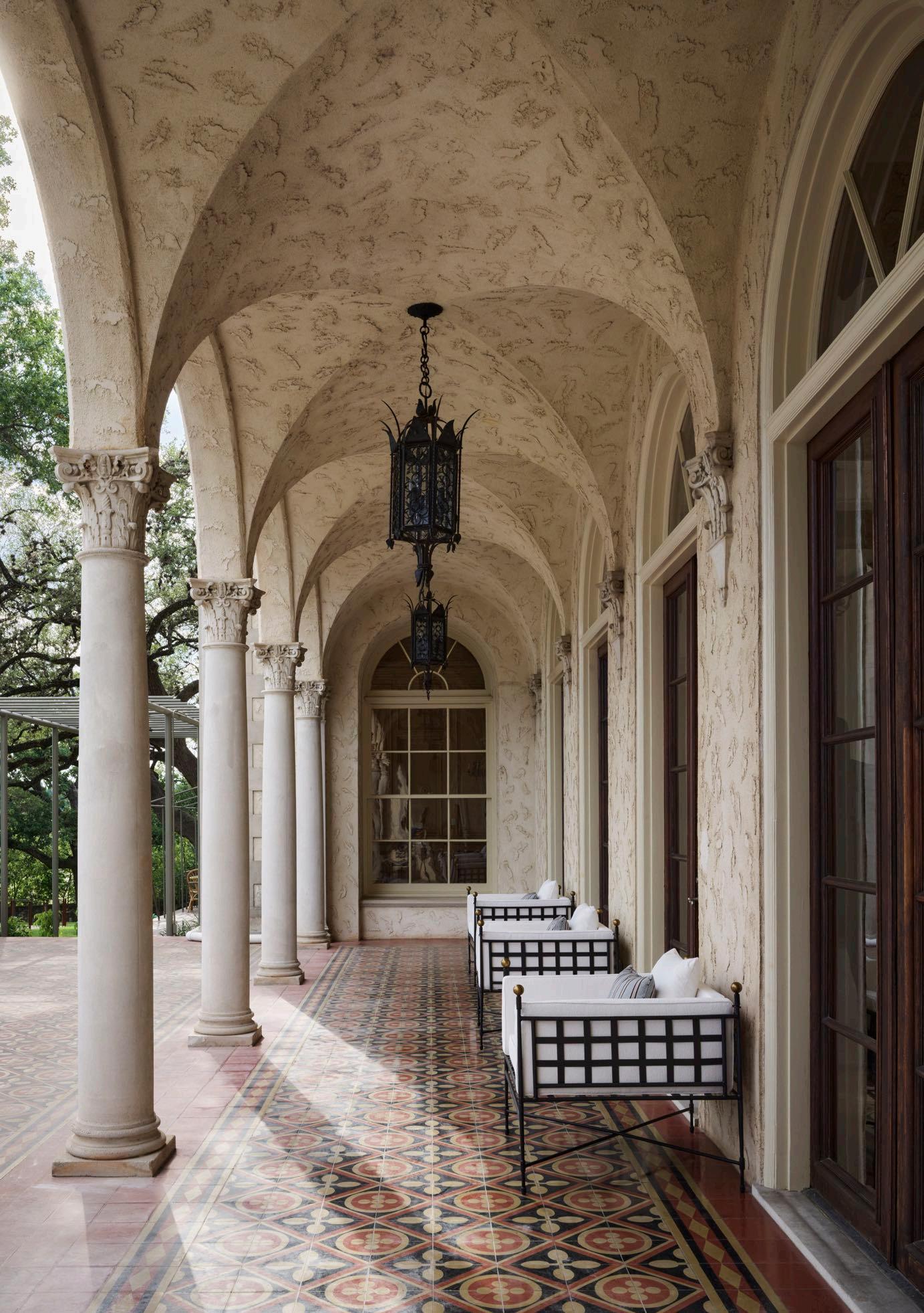 Originally the home of Edgar and Lutie Perry, this 10-acre estate was designed by architect Henry Bowers Thompson between 1917 and 1928 as a transportive oasis in the middle of Austin. Inspired by the owners’ extensive European travels, a series of formal gardens and a large Italianate mansion and carriage house were built along Waller Creek . A stone wall enclosed the entire compound. Inside, intricately carved wood and plaster molding, hand-wrought ironwork, and limestone details combine with Mexican-style tile work for an overall ornate effect. In its day, the estate set the bar for gracious entertaining in Austin Perry sold the estate in 1944, declaring that the mansion was, “A great place to throw a party, but too big to live in ” The estate’s current owners teamed with Auberge Resorts to set about transforming the venerable estate, reimagining the property through a modern interpretation of its residential past: relaxed European elegance