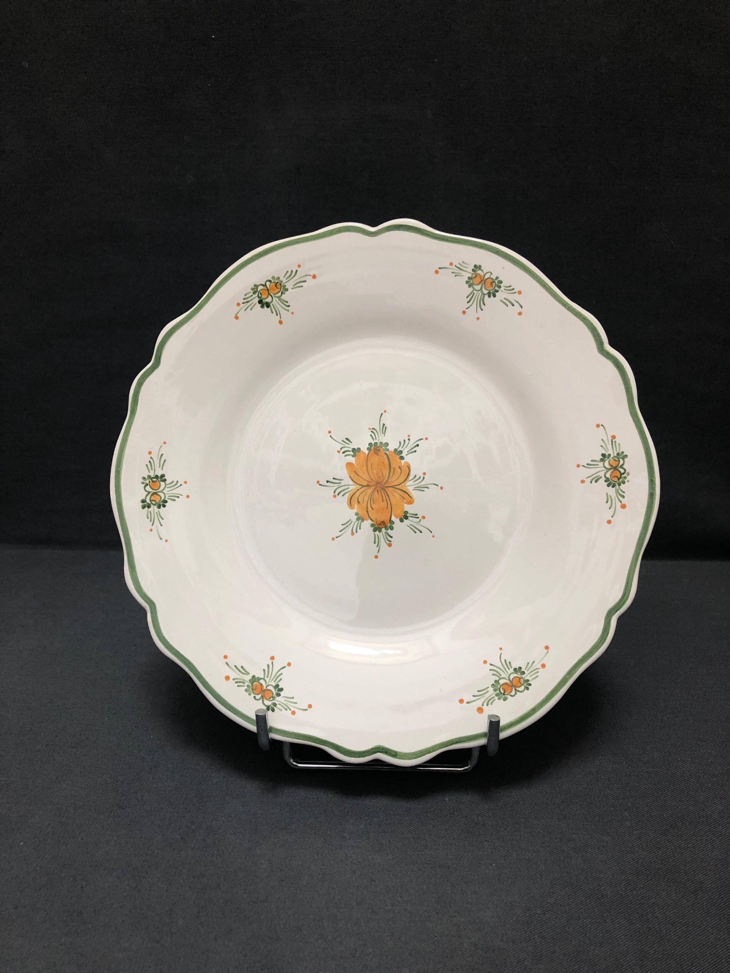 Hand made Feston plate with hand painted Romantique decoration by BOURG-JOLY MALICORNE