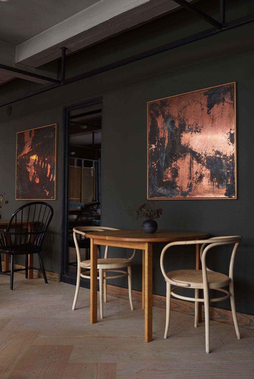 BY OEO STUDIO This two Michelin Starred restaurant shows up with the tactile materials, warm colours, art and a selection of furniture carefully recomposed to create just the right feeling. Drawing on inspiration from the natural landscape of Denmark, OEO Studio worked on an expressive paint colour palette developed in collaboration with Italian brand, Mutina and the restaurant design features rich and earthy tones in matt finishes from deep burnt red and clay tones to dense black hues. The lighting is a mix of mood and technical lighting, from Catellani & Smith, Frama, Astep, Flos and Danish lighting brand Anour, which blends perfectly to support the dining experience from start to finish. Finally, striking and colourful artworks by Teheranborn, Copenhagen-based artist Farshad Farzankia feature throughout the restaurant. Address: Wildersgade10B, 1408 -Copenhagen, Denmark