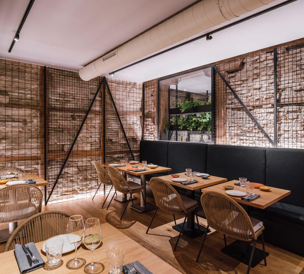 BY ZOOCO ESTUDIO The restaurant’s name means “The cow and the orchard” and it talks about the main product of the restaurant and the starting point for us to start with the project. The designers created a metallic lattice to show the existing walls and to give the new features to the ambiance. The geometry of the lattice comes from an abstraction of the world of agriculture and livestock. This lattice materializes in a natural oak wood in the areas of smooth walls and in black lacquered metal in the areas of the brick walls. The metallic structure is duplicated in some points to create the back bar station or storage spaces. Address: Calle de Recoletos7 -Madrid, Spain