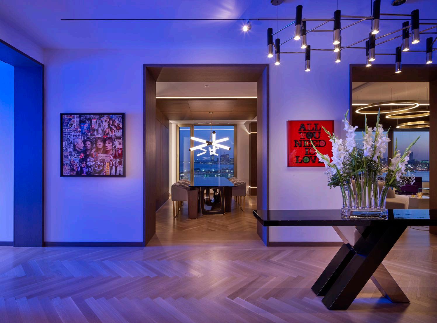 An impressive art collection, curated by Sune Nordgren, takes its cues from America, with a vibrant and colourful offering that includes works by American figurative painter Alex Katz, former street artist Shepard Fairey, and a twoand-a-half-metre tall sculpture, called Towers – by British artist Julian Opie – which refers to the modernity of America.
