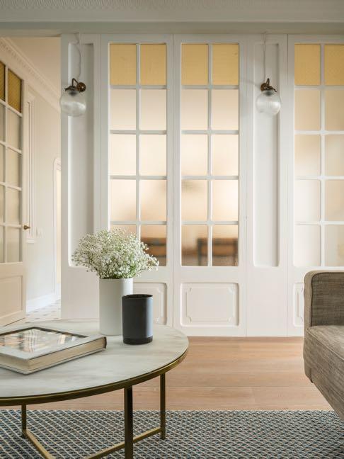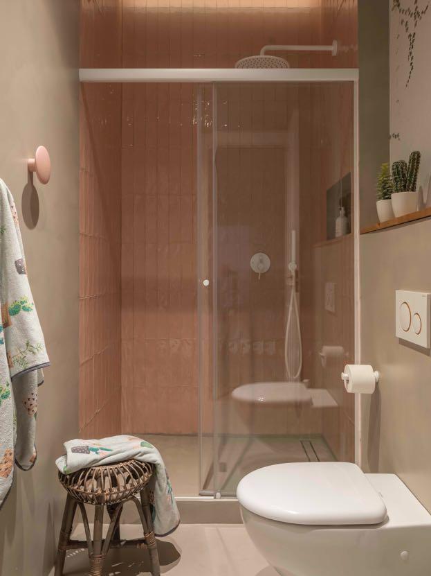 For the floors an oak parquet was chosen, transmitting nobility and quality to the space. While the microcement was used in bath and showers, combining it with glazed ceramic tiles of different colors, formats and following different placement patterns.
