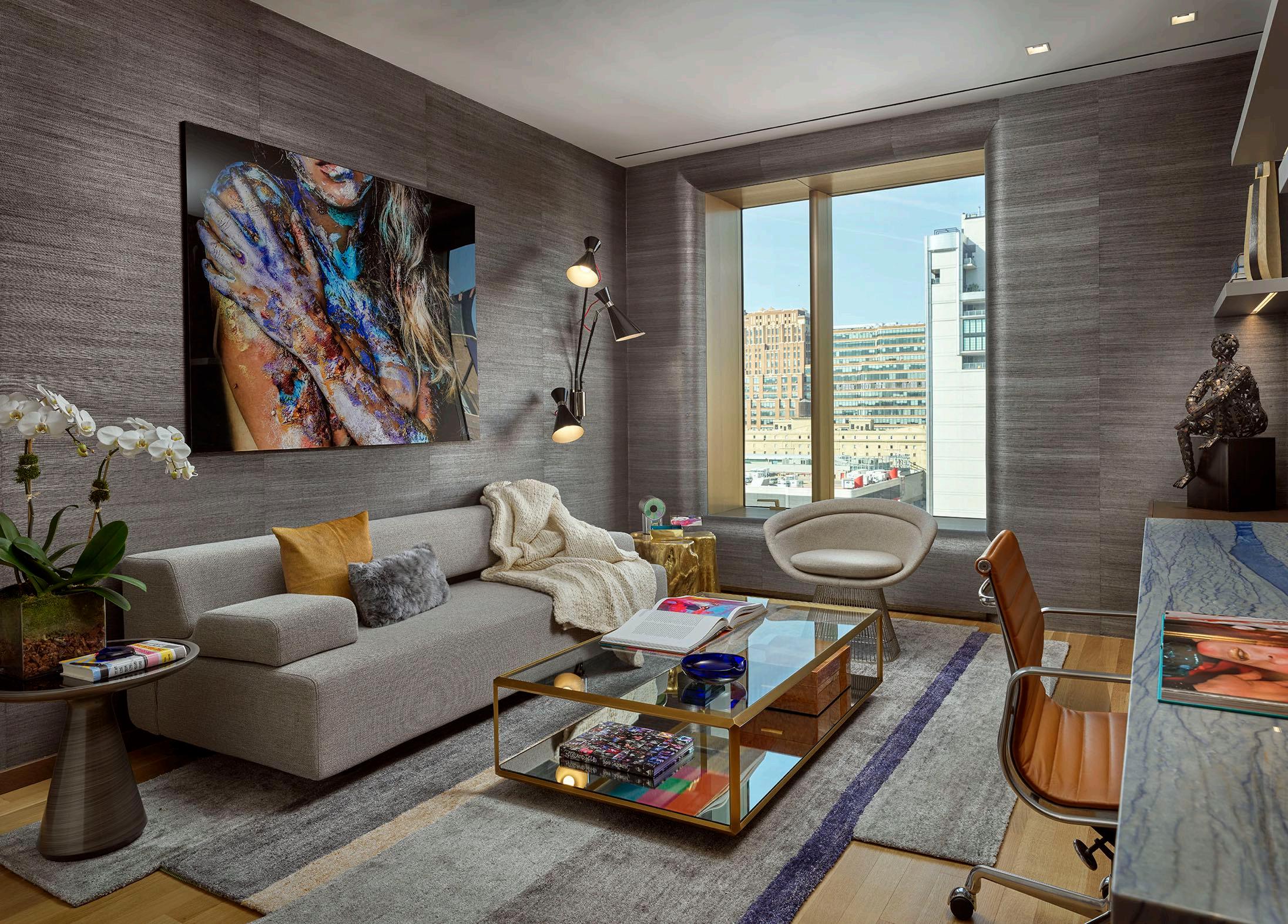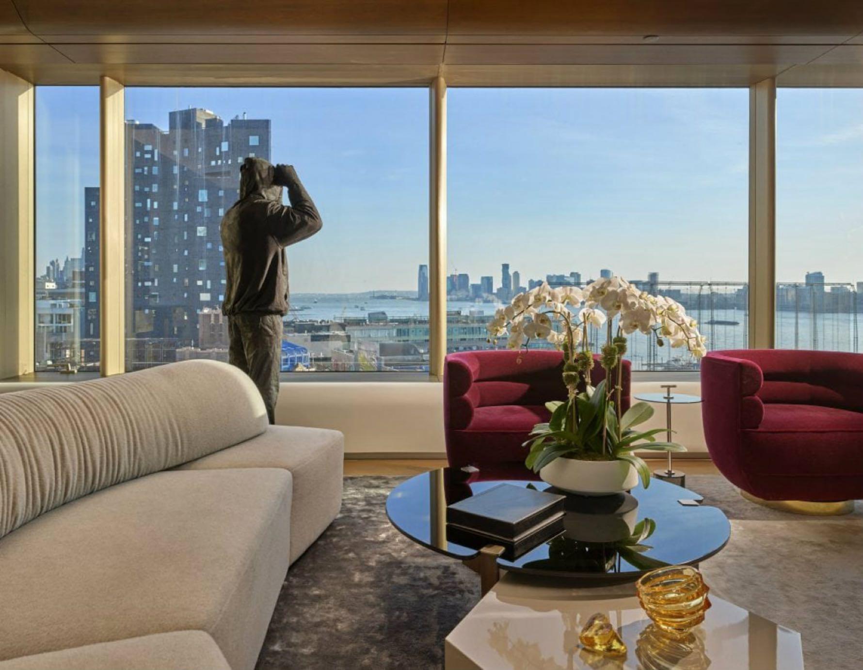 out over the Hudson River and passing boats considering the client’s a big boat liver as well. This is every boat lover’s dream and you can’t imagine the room without it.