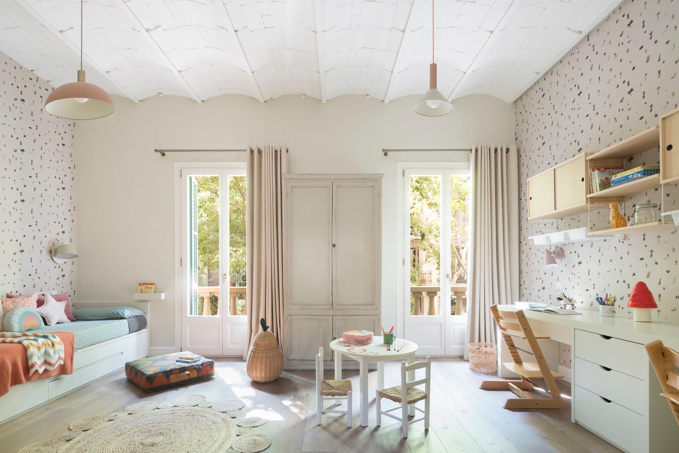 The children's room was designed in a wide and very bright way, it was arranged so that in the future it could be separated creating two independent rooms. Neutral tones were used applying notes of pastel colors and pink touches.