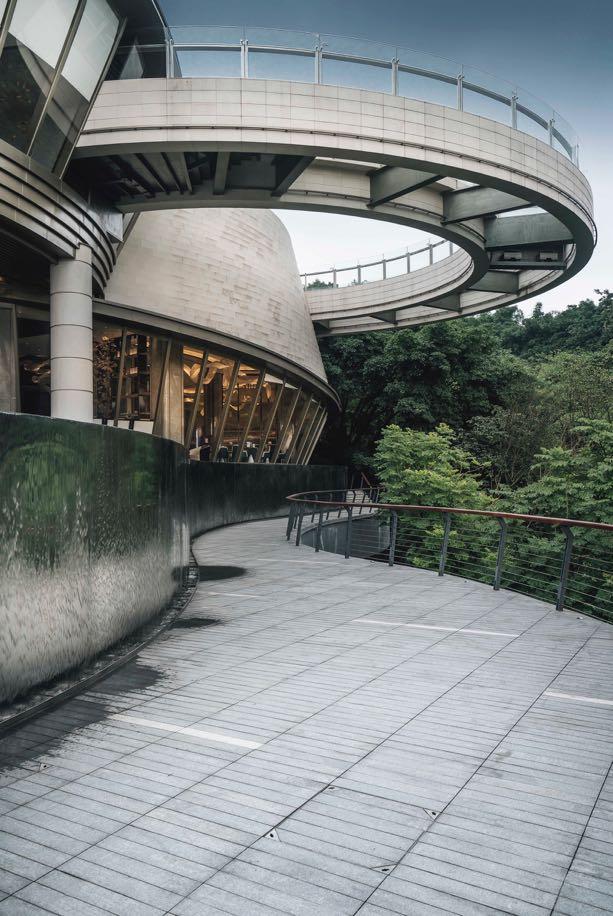 The LOOP features two showrooms linked by a crescent-shaped glassbottomed bridge named The Skywalk, which is aesthetically pleasing and pragmatic in function With the use of full steel frame structure and an onion-ring-like cladding system, the undulating forms of The LOOP echo and integrate with the dynamic contours of the site, while The Skywalk grants visitors an unobstructed view of the valley to admire the lush greeneries.